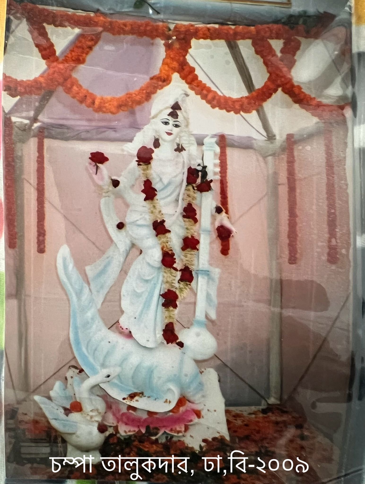 চিন, জাপান কিংবা তিব্বতে দেবী সরস্বতী হংসহীনা। চিন ও জাপানে সরস্বতীর সঙ্গে দেখা যায় ড্রাগনকে। দক্ষিণ-পূর্ব এশিয়ায় ড্রাগন মূলত নাগ বা সর্প। কম্বোডিয়ায় এবং ইন্দোনেশিয়াতে সরস্বতীর বাহন রাজহংস; যেমনটা দেখতে আমরা অভ্যস্ত। একটা সময় কম্বোডিয়ায় হিন্দু ধর্মের উপাসনা হতো বলে হয়তো সরস্বতীর এমন সরাসরি রূপায়ন হয়েছে সে-দেশে। অঙ্করভাট মন্দির তো বটেই, তারও কয়েক শতাব্দী আগে থেকেই কম্বোডিয়ায় একইসঙ্গে ব্রহ্মা এবং সরস্বতীর আরাধনার চল রয়েছে। অষ্টম শতকের নথিতে, বিশেষত খেমার সাহিত্যে তার প্রমাণ মেলে। কম্বোডিয়ার মতো ইন্দোনেশিয়া এবং থাইল্যান্ডের ছবিও অনেকটাই এক। ইন্দোনেশিয়াতেও দেবীর বাহন রাজহংস। থাইল্যান্ডে সরস্বতীর বাহন ময়ূর। পাশপাশি আরও এক বিচিত্র জিনিসের দর্শন মেলে, তা হলো দেবীর গলায় মালার বদলে অ্যামুলেট। কথ্যভাষায় এটাকে ওই লাকি লকেট বললেও চলে।