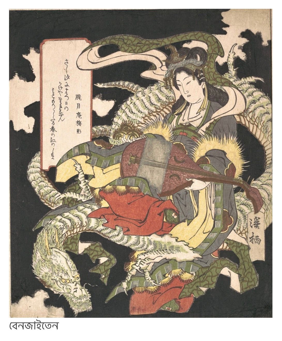 সময় পঞ্চম-ষষ্ঠ শতকের কথা। বাঙালির কল্পনায় শ্বেত শাড়ি পরিহিতা বা পুরাণের ‘শ্বেতবসনা’ দেবী সরস্বতী জাগলেও জাপানে শাড়ির বদলে মোটা পশমের ওভারকোট গায়ে পরে পূজিত হতেন দেবী সরস্বতী। সে-দেশে তিনি ‘বেনজাইতেন’ নামে পরিচিত। তবে ‘বেনজাইতেন’ দেবী যে সরস্বতী দেবী, বা ভারতের গণ্ডি ছাড়িয়ে দেবী সরস্বতী জাপানে কীভাবে পাড়ি জমালেন সেখানে প্রশ্ন থেকে যায়।