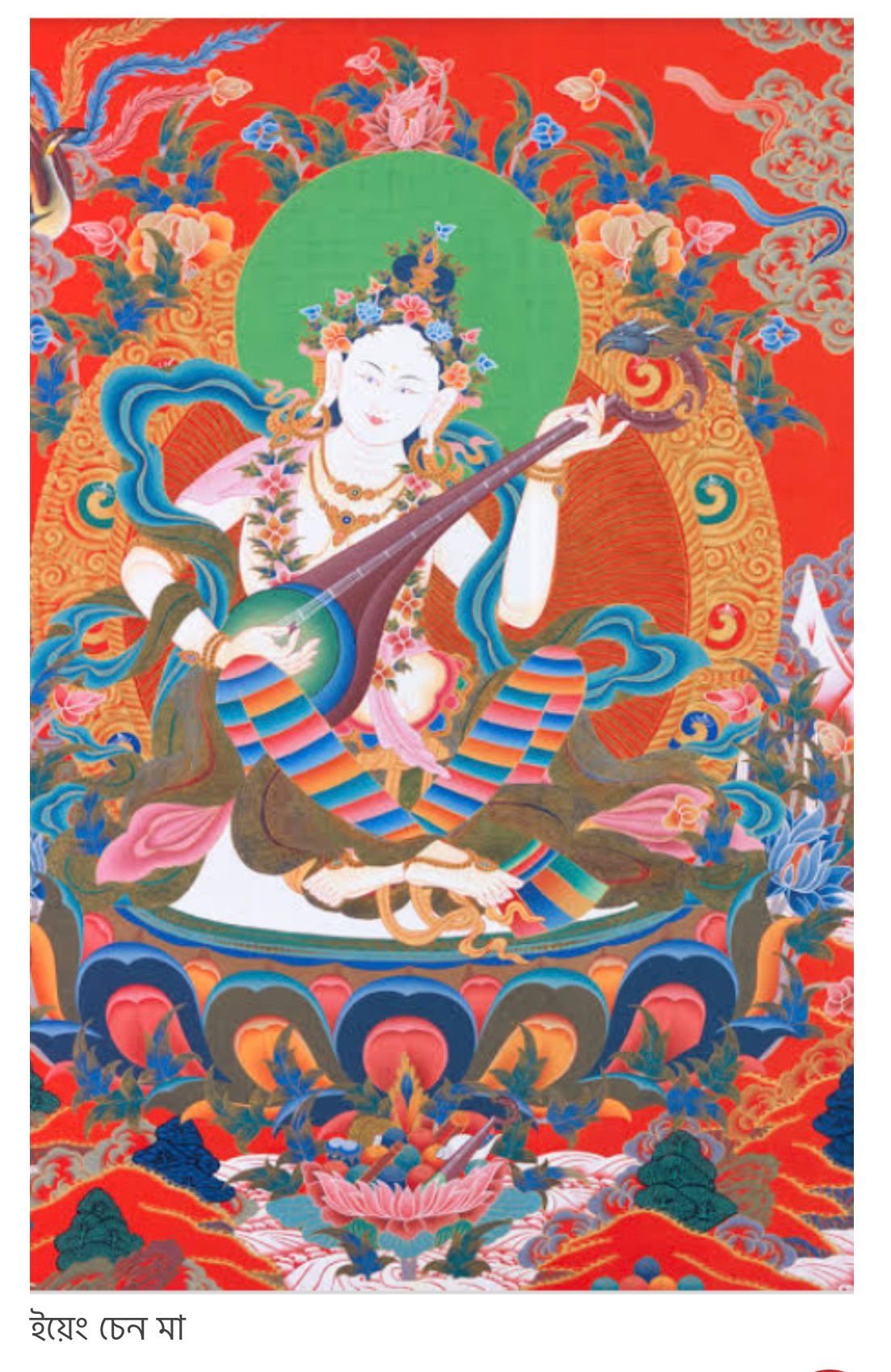 তিব্বতে তাঁর পরিচয় ‘ইয়েং চেন মা’। তিব্বত বহুযুগ আগ থেকেই বৌদ্ধধর্মের অন্যতম পীঠস্থান। বজ্রযান তন্ত্রানুসারে সরাসরিভাবেই সেখানের সংস্কৃতিতে অন্তর্ভুক্ত হয়েছেন সরস্বতী। সেখানেও তিনি শ্বেতবস্ত্রা, মঞ্জুশ্রীর সঙ্গিনী। এখানে আরও একটা কথা বলে নেওয়া দরকার। মহাযানতন্ত্রে দেবী সরস্বতীর তিনটি ভিন্ন ভিন্ন রূপ রয়েছে— কোথাও তিনি দ্বিভূজা, কোথাও আবার চতুর্ভূজা বা ষড়ভূজা।