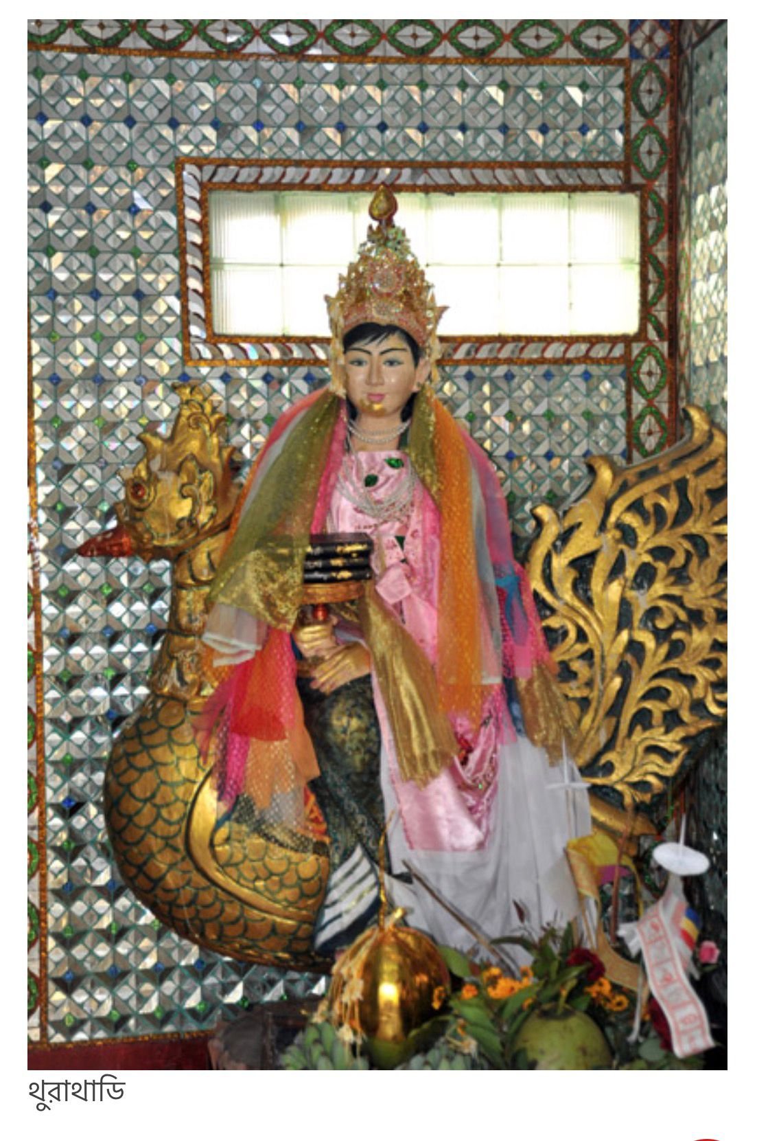 মায়ানমারে পূজিত হন সরস্বতী। সেখানেও বৌদ্ধ ধর্মের সূত্র ধরেই পৌঁছেছেন দেবী। বার্মায় তাঁর নাম ‘থুরাথাডি’। বিদ্যার দেবী হিসাবেই আরাধনা হয় থুরাথাডির। হাতে বীণার বদলে থাকে বইয়ের সম্ভার। মায়ানমারের পুরাণে দেবী কল্পিত হয়েছেন গ্রন্থাগারিক। ভারতের প্রতিবেশী রাষ্ট্র হওয়া সত্ত্বেও সরস্বতী মায়ানমারে পাড়ি জমিয়েছেন চিন বা জাপানে বন্দনা শুরু হওয়ার অনেক পরে।